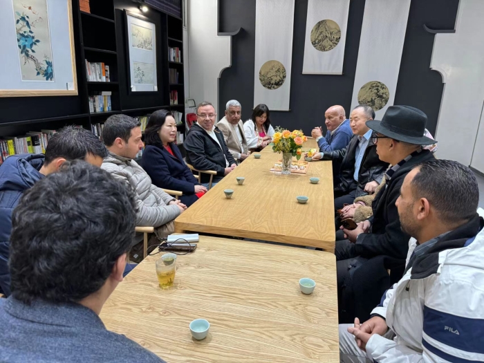 中新網(wǎng)12月24日電 當(dāng)?shù)貢r(shí)間12月23日上午,出席北非地區(qū)漢學(xué)家大會(huì)的近20位漢學(xué)家、翻譯家代表,調(diào)研人民天舟(北京)出版有限公司摩洛哥星空書(shū)店。這里也將成為來(lái)自埃及、摩洛哥、突尼斯、蘇丹等國(guó)的漢學(xué)家在北非的創(chuàng)作中心。