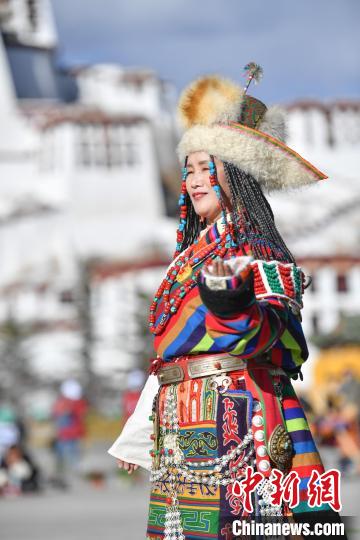 圖為模特在展示藏族傳統(tǒng)服飾。貢嘎來松 攝