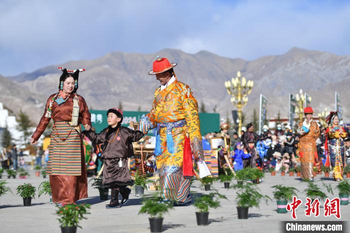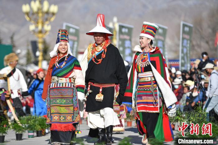 圖為模特在展示日喀則傳統(tǒng)服飾。貢嘎來松 攝