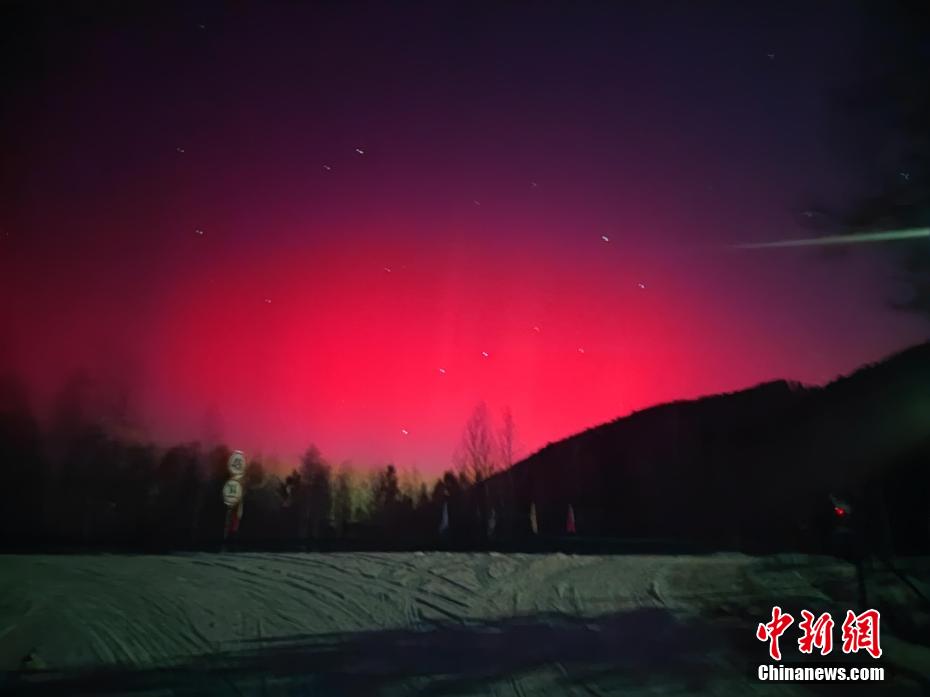 12月1日21時18分,內(nèi)蒙古額爾古納市多地出現(xiàn)極光現(xiàn)象。紅色、綠色將天空渲染得絢麗無比,點(diǎn)點(diǎn)星辰在極光中格外耀眼,美輪美奐的天空與白雪覆蓋的大地交相輝映,宛若夢境。