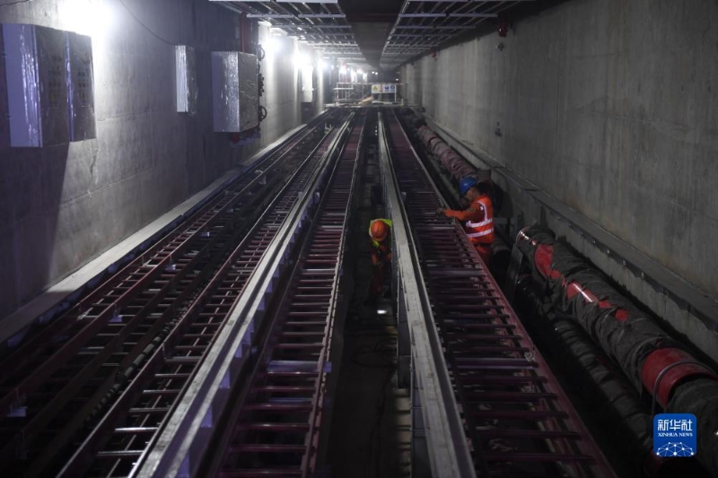 11月27日,工人在深中通道海底沉管隧道內(nèi)進行安裝作業(yè)。