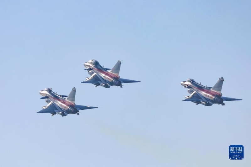 中國人民解放軍空軍八一飛行表演隊三機編隊從華北某機場啟程(11月7日攝)。新華社發(fā)(朱姜海 攝)