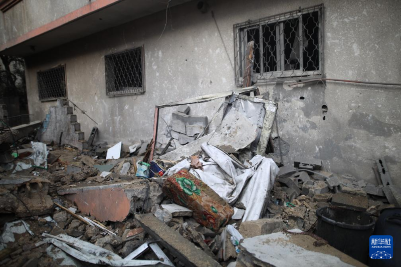 這是12月25日在加沙地帶中部邁加齊難民營拍攝的以軍空襲后的受損情況。
