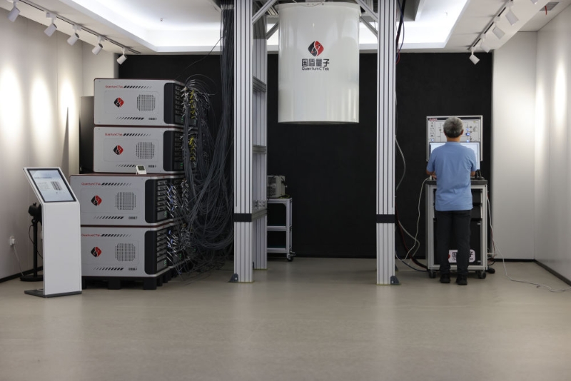 2023年7月21日,國(guó)盾量子首席科學(xué)家彭承志在位于安徽合肥的科大國(guó)盾量子技術(shù)有限公司展廳操作“祖沖之二號(hào)”同款超導(dǎo)量子計(jì)算機(jī)。新華社記者 金立旺 攝