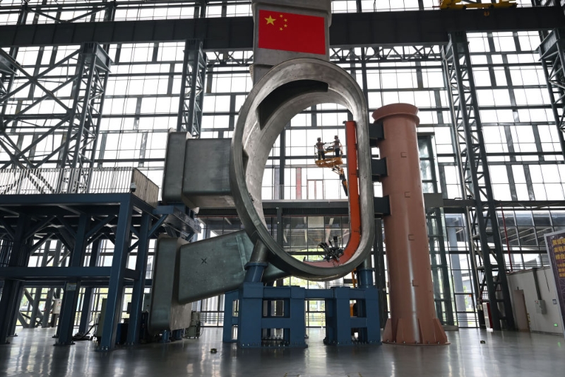 2023年9月15日,工作人員在聚變堆主機(jī)關(guān)鍵系統(tǒng)綜合研究設(shè)施(CRAFT)1/8真空室及總體安裝實(shí)驗(yàn)平臺(tái)進(jìn)行設(shè)備調(diào)試。新華社記者 周牧 攝