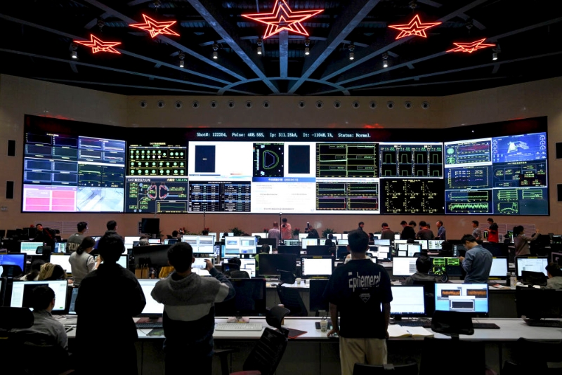這是實(shí)驗(yàn)成功后的全超導(dǎo)托卡馬克核聚變實(shí)驗(yàn)裝置(EAST)控制大廳(2023年4月12日攝)。新華社記者 黃博涵 攝