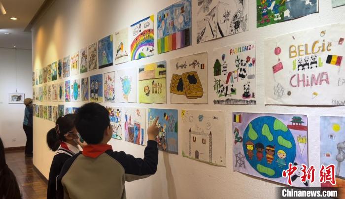 記者在現(xiàn)場展出的畫作中看到,來自中國的孫悟空與來自比利時的藍精靈相遇,憨態(tài)可掬的熊貓揮舞著中比兩國國旗,兩國國旗顏色幻化的蝴蝶在花叢中翩翩起舞,不同膚色的小朋友們手拉著手歡歌笑語……