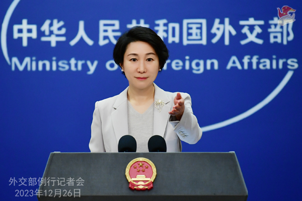 中新網北京12月26日電(記者 李京澤 郭超凱)中國外交部發(fā)言人毛寧12月26日主持例行記者會。