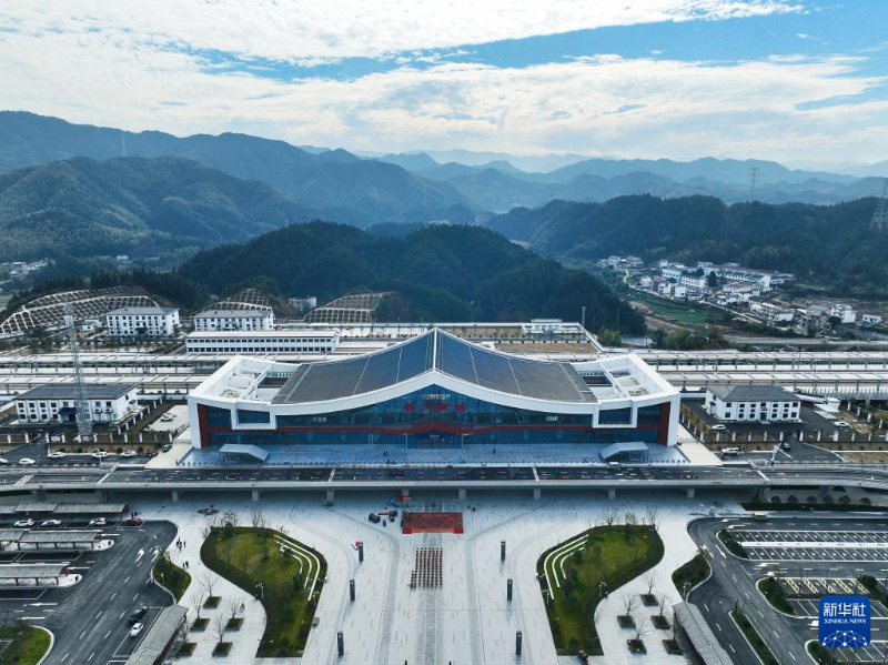 12月26日拍攝的杭州至南昌高鐵祁門南站(無(wú)人機(jī)照片)。