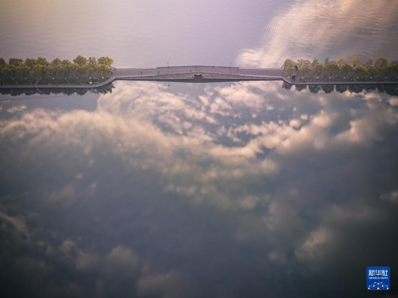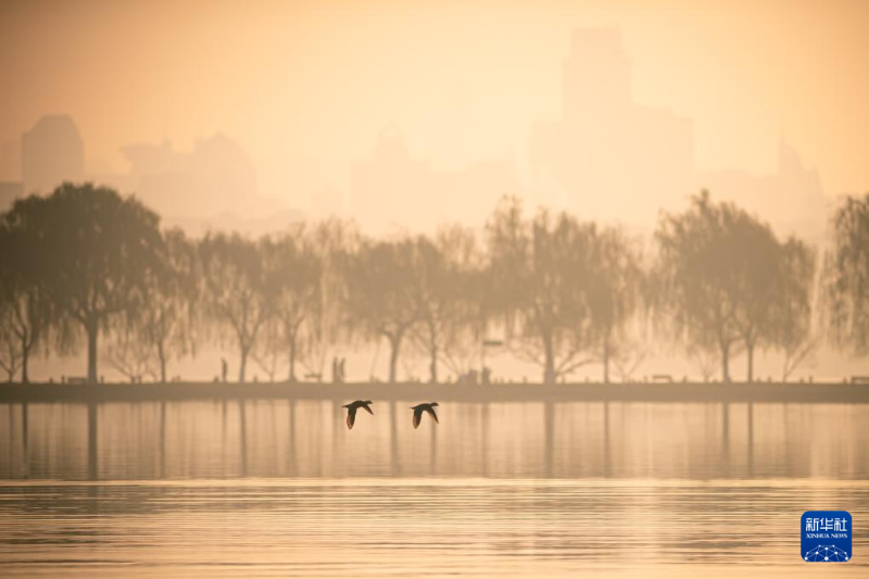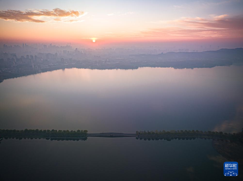 這是日出時(shí)分的杭州西湖(12月26日攝,無(wú)人機(jī)照片)。