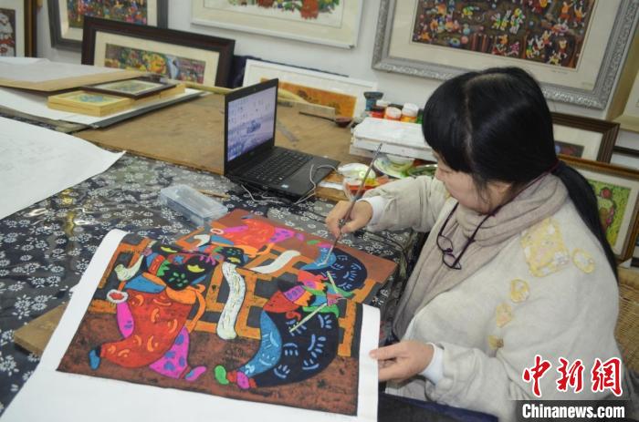 在重慶市綦江區(qū)農(nóng)民版畫院,李成芝正在專注地創(chuàng)作一幅作品,她先用鉛筆在畫紙上勾出草稿,再用涂料給草稿上色,然后根據(jù)草稿在木板上雕刻出圖案,涂上顏料,最后把紙壓在板子上,拓印成畫。一筆筆、一步步,專注而細(xì)致。