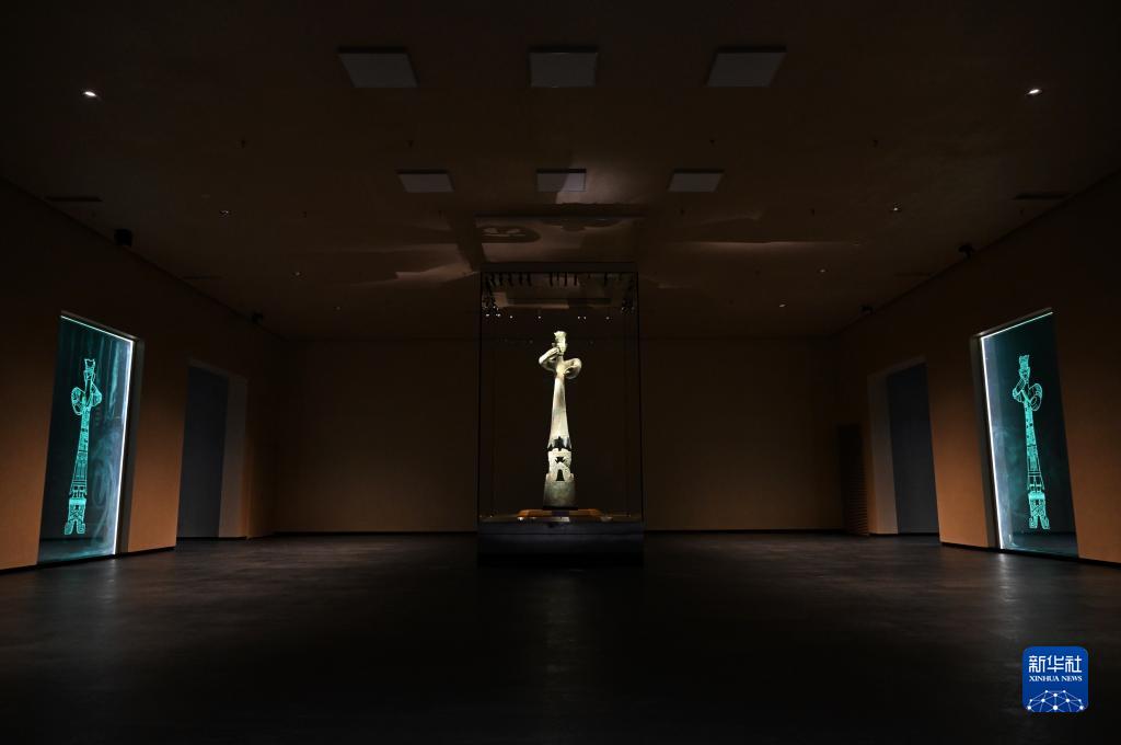7月26日在三星堆博物館新館拍攝的青銅大立人像。(圖源:新華社)
