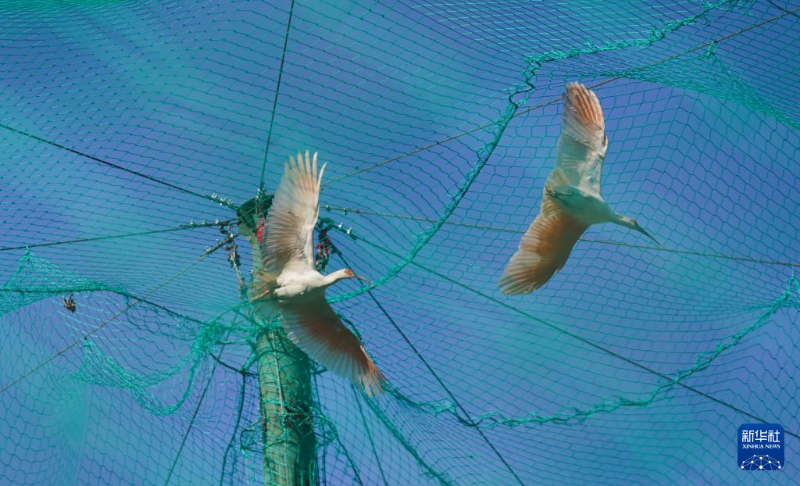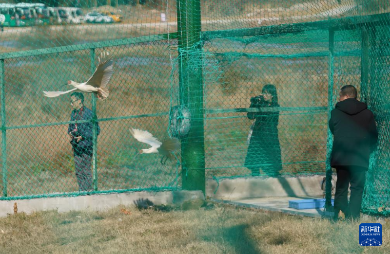 12月27日,朱鹮被放入訓(xùn)練網(wǎng)籠開始適應(yīng)當(dāng)?shù)丨h(huán)境。