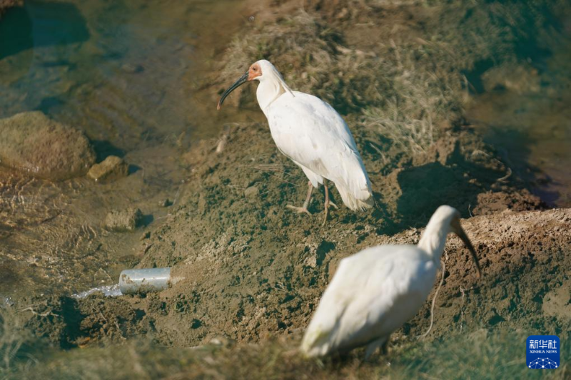 12月27日,朱鹮在訓(xùn)練網(wǎng)籠內(nèi)適應(yīng)當(dāng)?shù)丨h(huán)境。