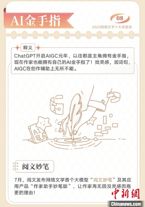 2023網(wǎng)絡(luò)文學十大關(guān)鍵詞——AI金手指。閱文集團 供圖