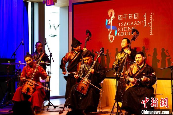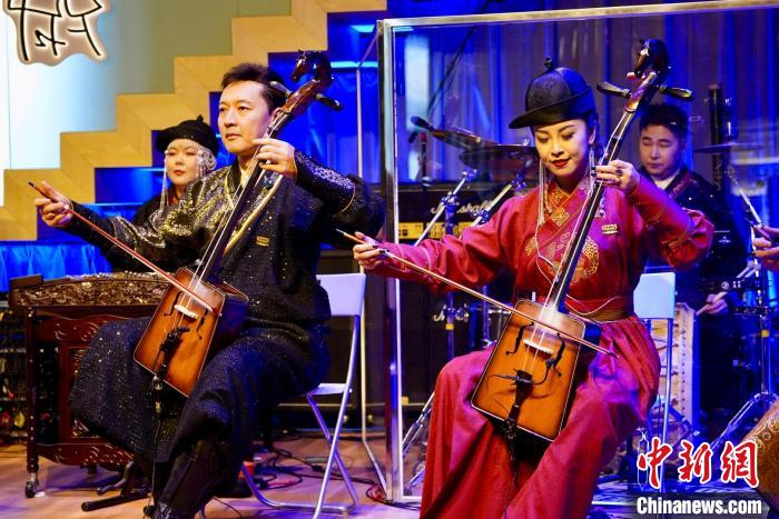 查干樂(lè)團(tuán)成員演奏時(shí)使用蒙古族特色樂(lè)器。陳欣怡 攝