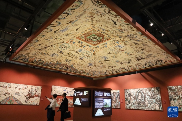 9月6日,與會嘉賓在第六屆絲綢之路(敦煌)國際文化博覽會上參觀敦煌文化主題展。新華社記者 馬希平 攝(來源:新華網(wǎng))