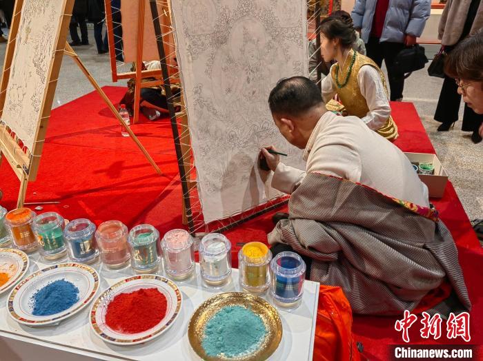 唐卡非遺傳承人在現(xiàn)場展示。應(yīng)妮攝