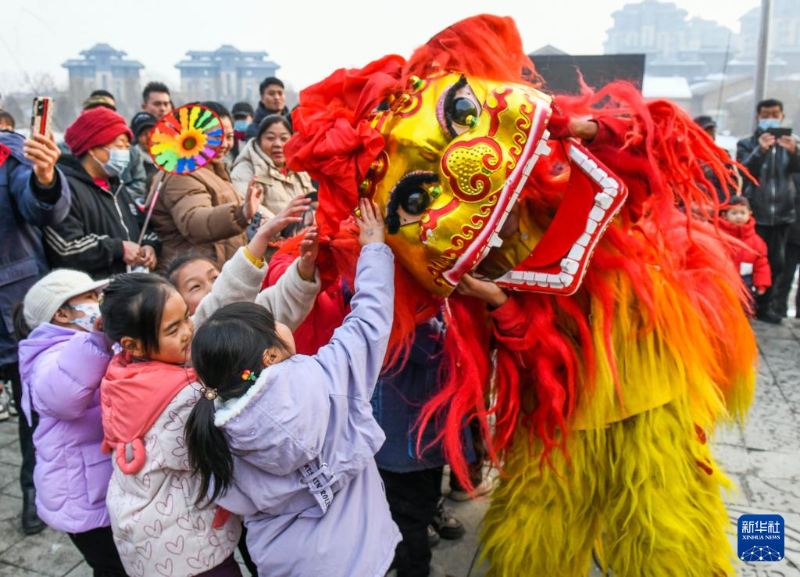 ??12月30日,民間藝人在河北省遵化市興旺寨鎮(zhèn)一景區(qū)表演舞獅。