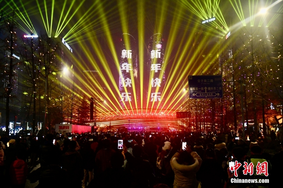 成都雙子塔上演燈光秀慶新年
