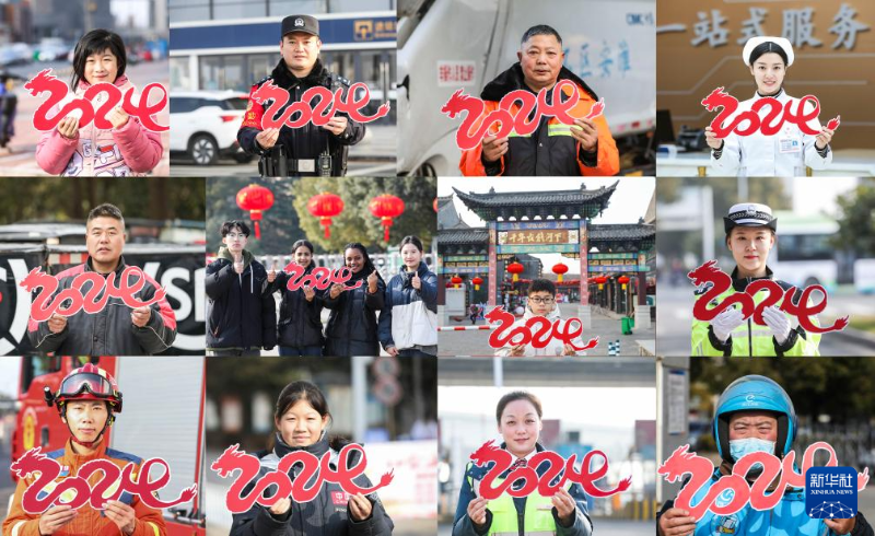 1月1日,江蘇省淮安市不同行業(yè)的人們展示“2024”字樣(拼版照片)。