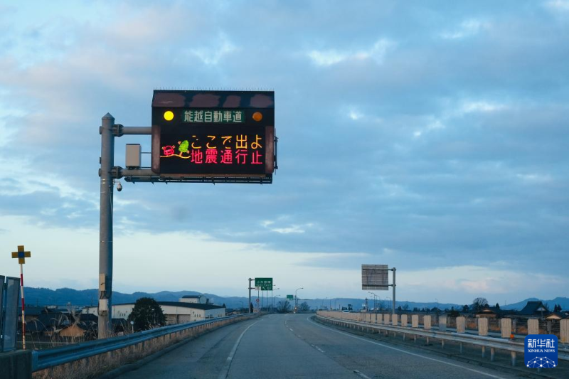 1月1日,日本富山縣小矢部市的高速公路因地震關(guān)閉。新華社發(fā)(孫佳林 攝)