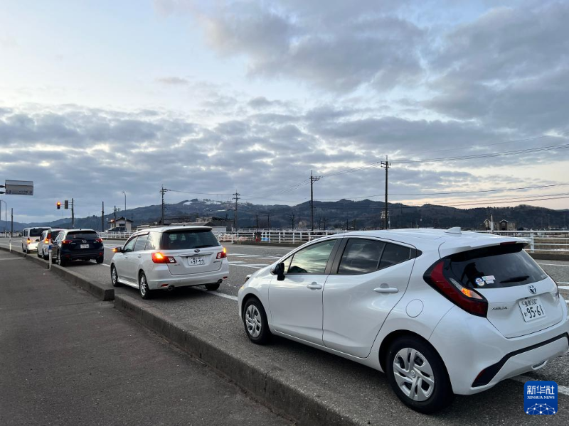 1月1日,汽車停在日本富山縣小矢部市的高速出口處,等待新的消息。新華社發(fā)(孫佳林 攝)
