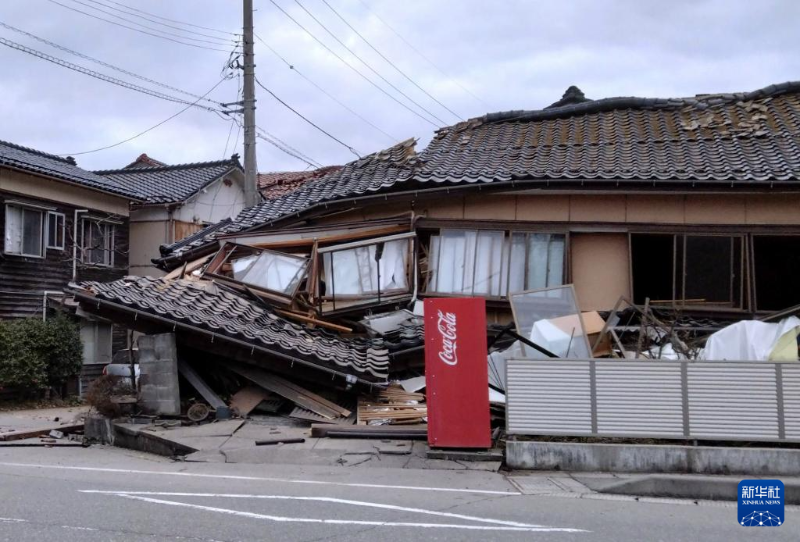 這是1月1日在日本石川縣輪島市河井町拍攝的受損房屋。新華社/共同社