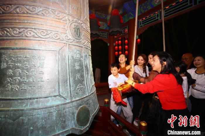中新網(wǎng)三亞1月1日電 (張月和)歲始更新是良辰。2023年12月31日晚,大量市民游客相聚在三亞南山文化旅游區(qū),撞響108響鐘聲,在祝福國泰民安、生活幸福中共同迎接2024年的到來。