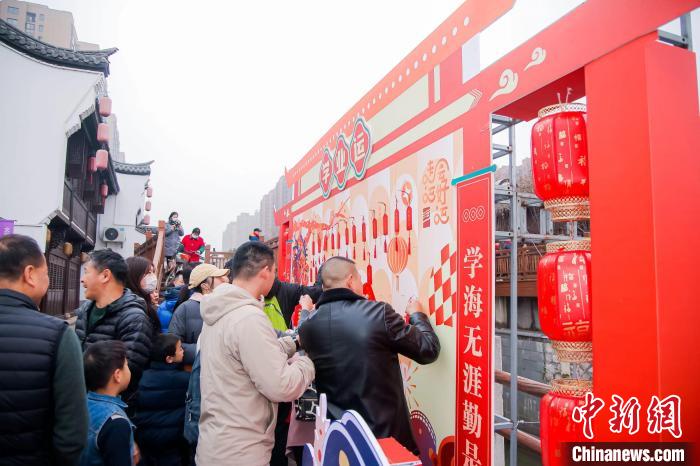 從橋西歷史文化街區(qū)前往運河天地的路上,一塊大大的“吉祥運”標牌得到了“明星般”的待遇,拿著“?!弊趾拖鄼C等待合影的民眾,圍了里三層外三層。據(jù)悉,這是此次走運大會設置的10個打卡點位之一,此外還有健康運、事業(yè)運、愛情運、財富運、學業(yè)運等點位。