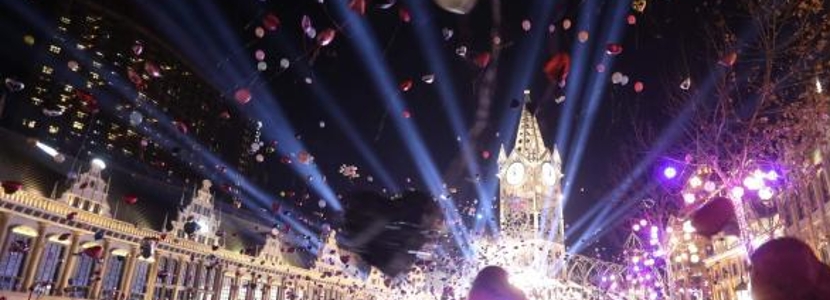 山東青島萬(wàn)人“跨年夜”音樂(lè)狂歡派對(duì)上,上萬(wàn)人共同迎接新年。金正輝 攝