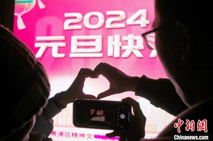 游客在外灘濱江步道上合影,迎接2024年的到來。中新網(wǎng)記者 殷立勤 攝