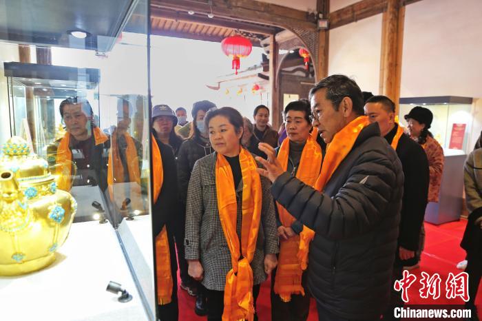 中新網(wǎng)福州1月2日電 (記者 劉可耕)“百鏨成器”西藏朵普倉(福建)鏨刻雕作藝術(shù)傳承展,2日在福建省海峽民間藝術(shù)館揭幕。福建省文聯(lián)黨組書記王秋梅宣布展覽開展。