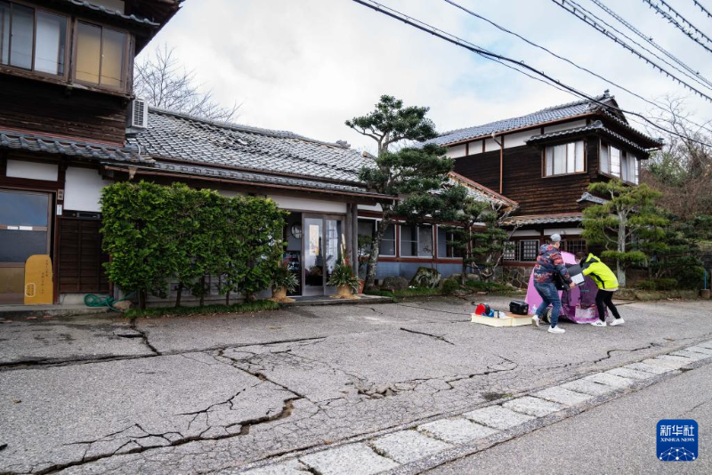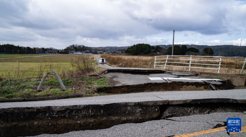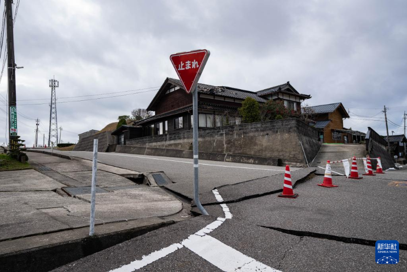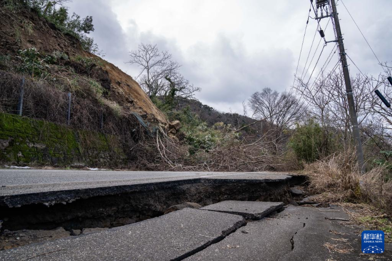 1月2日,在日本石川縣羽咋郡,道路被地震損壞。
