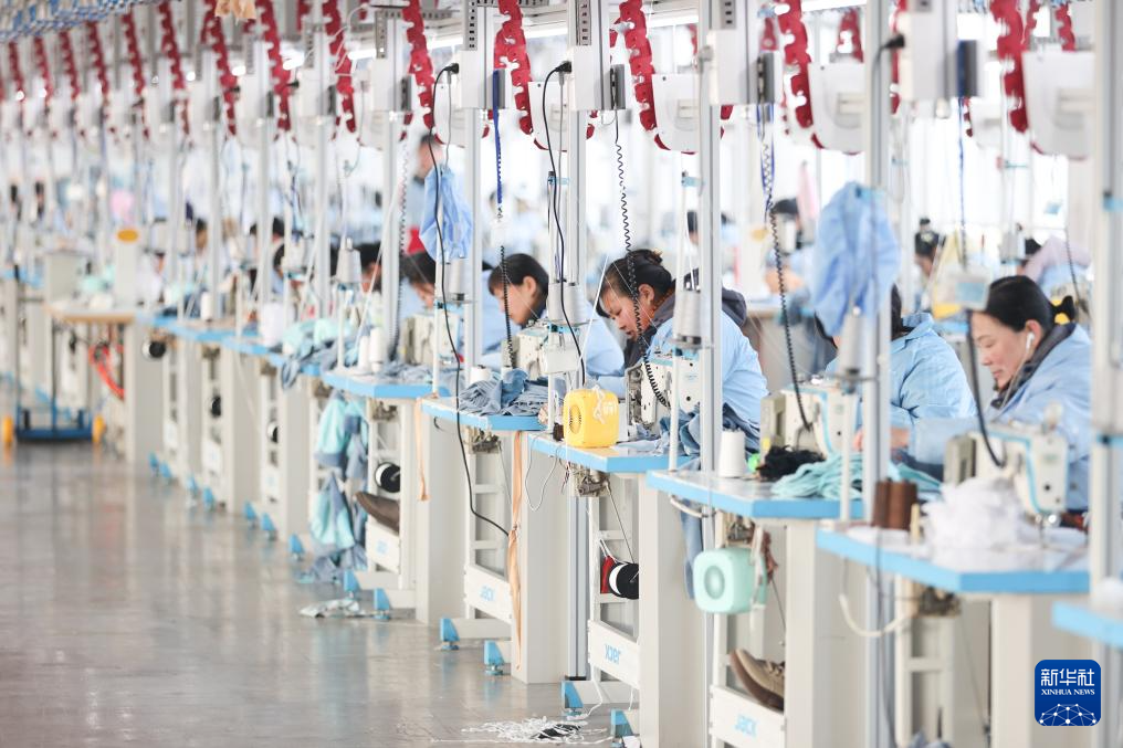 1月3日,在河北省遵化市經(jīng)濟(jì)開(kāi)發(fā)區(qū)一家服裝企業(yè),工人在生產(chǎn)車間工作。