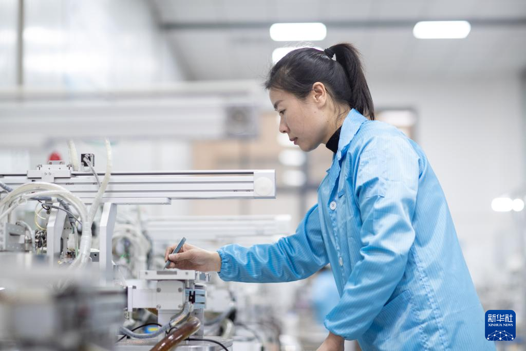 1月3日,在山東省棗莊市臺(tái)兒莊經(jīng)濟(jì)開(kāi)發(fā)區(qū)一家鋰電企業(yè),工人在生產(chǎn)車間工作。