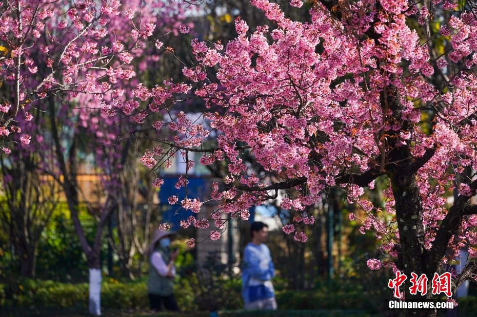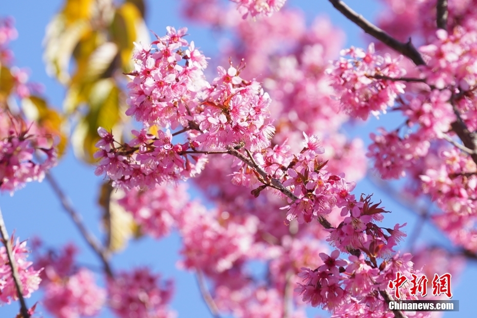1月2日,盛開的冬櫻花。近日,云南昆明冬櫻花盛開,勾勒出獨屬“春城”的冬日畫卷。中新社記者 劉冉陽 攝