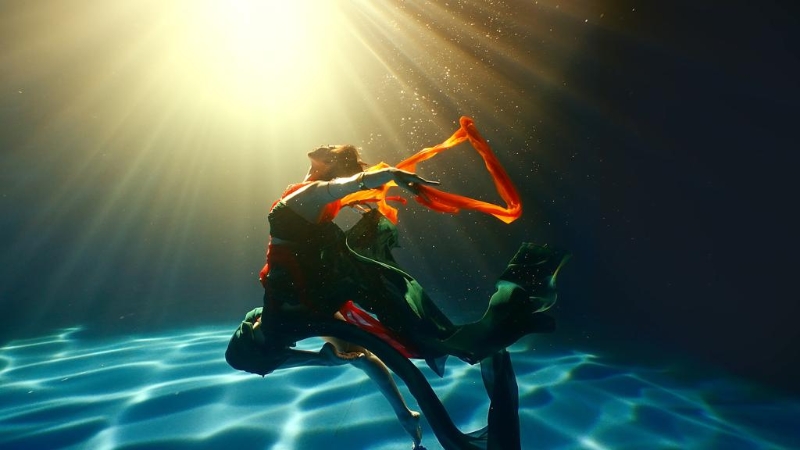 演員演繹水下飛天舞蹈《洛神水賦》(視頻截圖)。