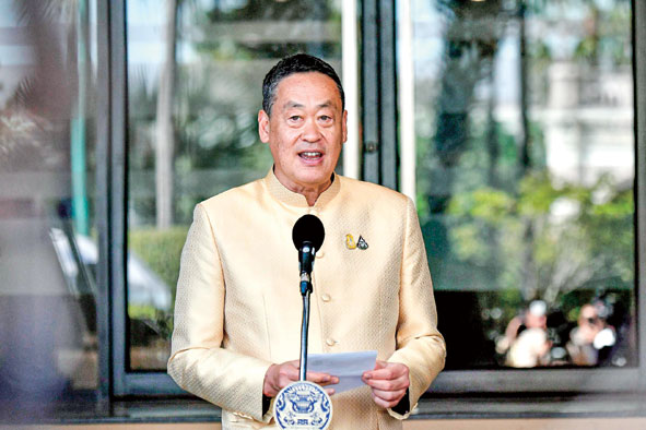 1月2日,泰國總理賽塔在首都曼谷總理府舉行的發(fā)布會上發(fā)言。新華社發(fā)(泰國總理府供圖)