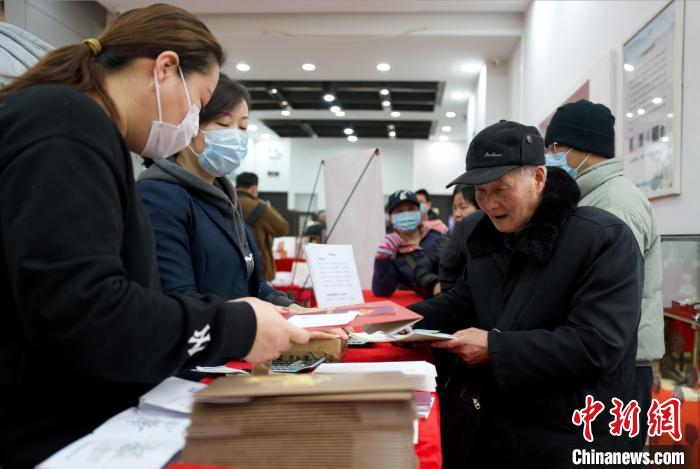 ? ?集郵愛好者展示郵票。方建飛 攝