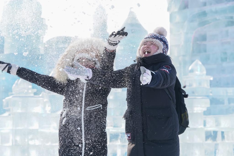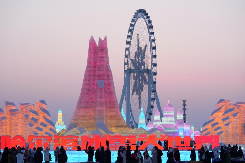 1月5日,游客在哈爾濱冰雪大世界游玩。新華社記者 王松 攝