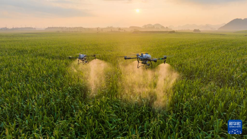 大疆農(nóng)業(yè)無人機T60(右)與T25P在田間作業(yè)(資料照片)。新華社發(fā)