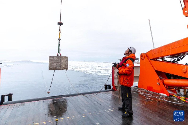 北京時間1月6日,考察隊在布放潛標。北京時間1月6日,中國第40次南極考察隊在阿蒙森海成功布放深水生態(tài)潛標,這也是中國首次在極地布放生態(tài)潛標。新華社記者 周圓 攝