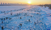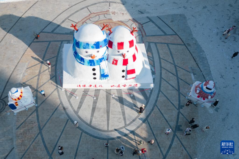 1月8日,游客在哈爾濱市道外區(qū)中華巴洛克歷史文化街區(qū)內(nèi)游玩(無人機(jī)照片)。