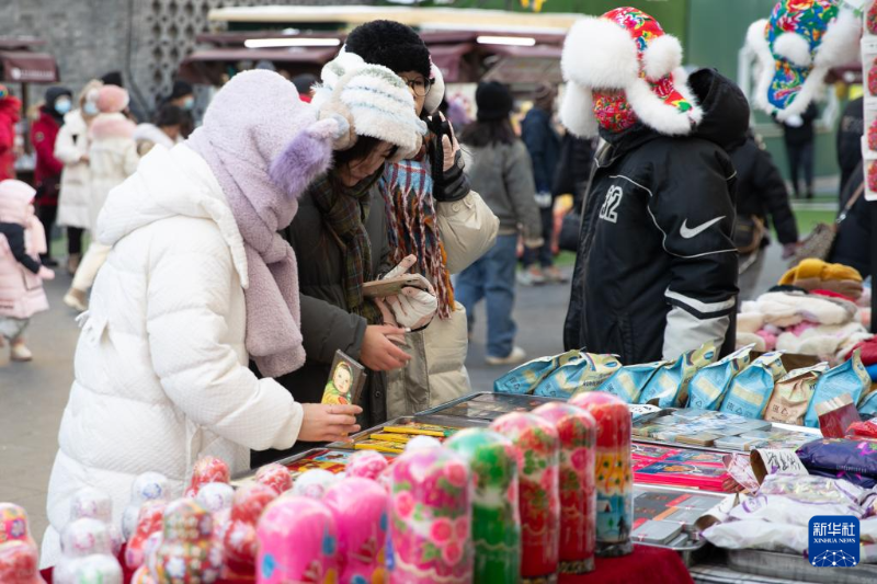 1月8日,游客在哈爾濱市道外區(qū)中華巴洛克歷史文化街區(qū)內(nèi)選購紀(jì)念品。