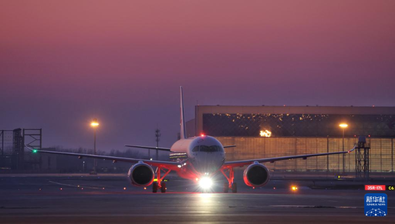 1月9日,飛機(jī)在北京大興國(guó)際機(jī)場(chǎng)降落。