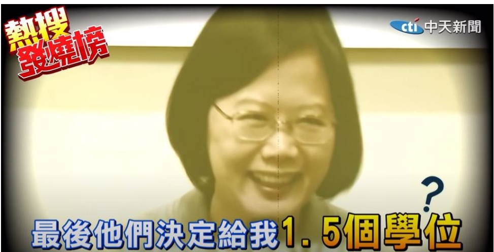 蔡英文自夸獲得1.5個博士學位。(圖/截自中天YouTube)