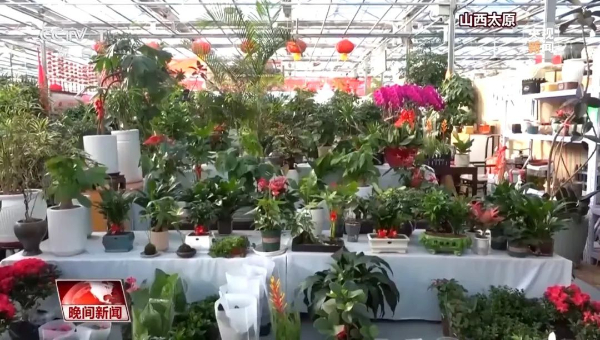 在山西太原市杏花嶺區(qū)的一家大型花卉市場,店鋪銷售的年宵花品種多樣、色彩亮麗、樣式喜慶。市場內(nèi)的花卉價格從十幾元到上百元不等。