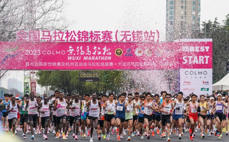 2023年3月19日,2023無(wú)錫馬拉松參賽選手從起點(diǎn)出發(fā)。新華社記者 李博 攝