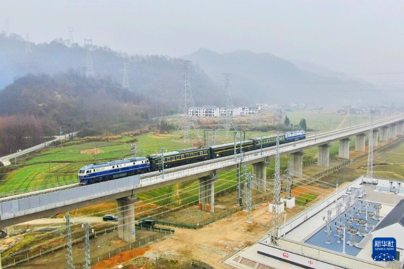 1月15日,檢測列車通過池黃高鐵九華山站。